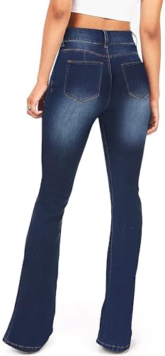 KDF Flare Jeans for Women Trendy Bootcut Bell Bottom Jeans High Waisted Stretch Slimming Bell Bottoms Jeans