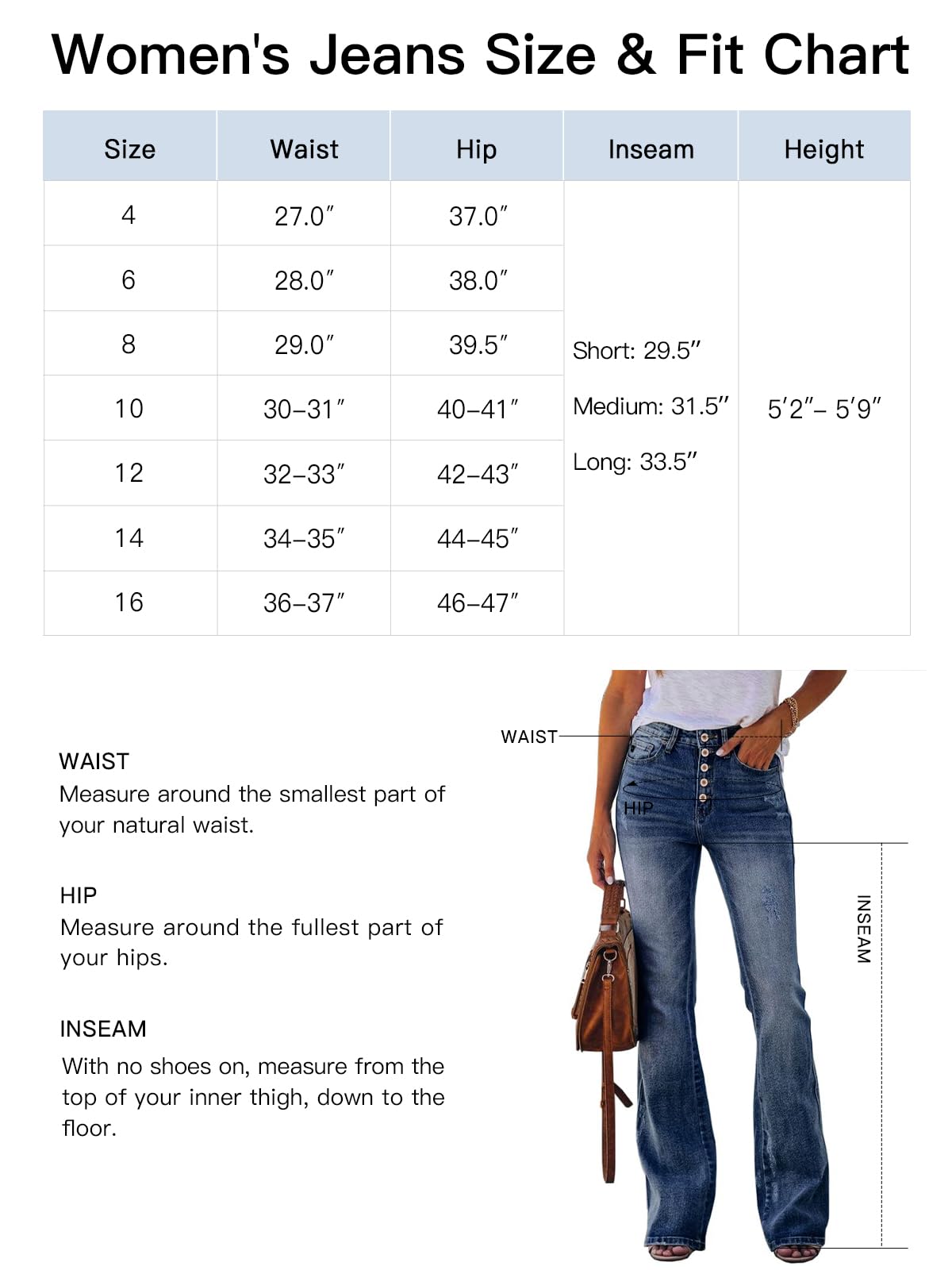 • Features: Bootcut Jeans / Bell-bottomed Jeans / Button Fly Jeans for Women / High Waist / Casual / Fashion / Mom Jeans / Tummy control / Knee Tight / Flared Jeans / Zip Closure/ Distressed Western Jeans