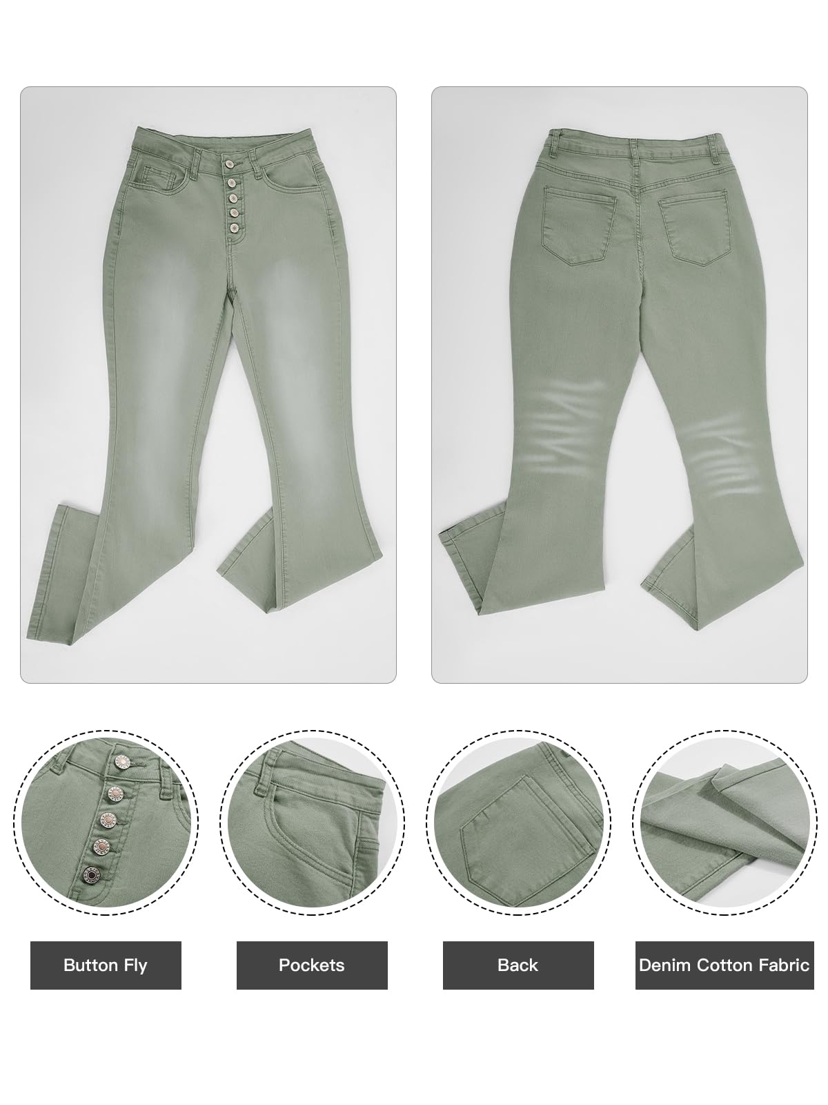 Koinshha Womens High Waisted Jeans Boyfriend Stretch Flare Casual Bootcut Denim Pants Army Green