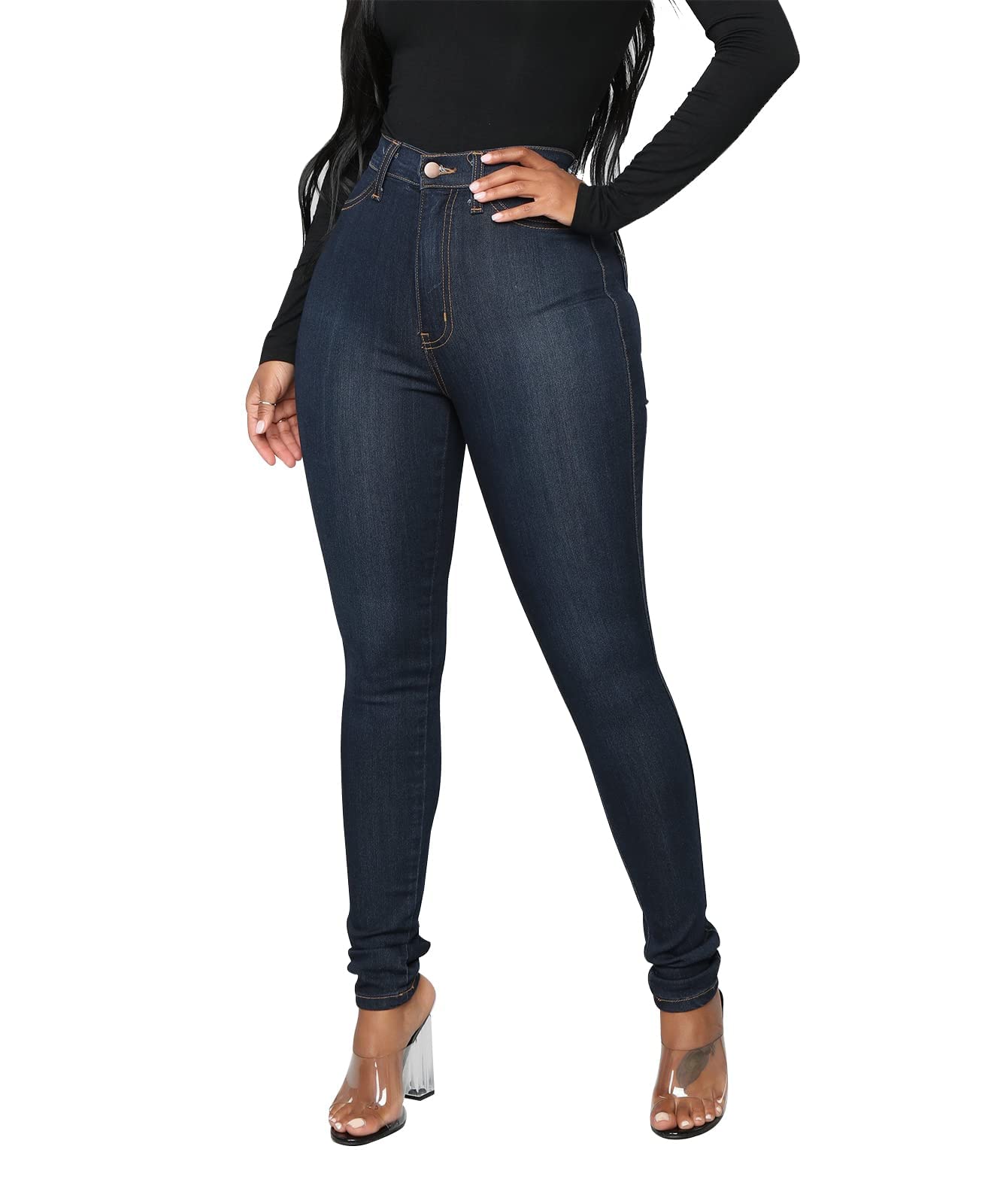 KUNMI Womens Classic High Waisted Skinny Stretch Butt Lifting Jeans Slim Fit Denim Pants Dark Blue