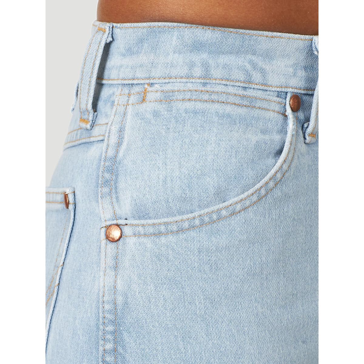 • FIVE POCKET STYLING. This high-waisted jean is constructed with authentic 5 pocket styling: (1) watch pocket, (2) front scoop pockets, (2) back spade pockets.