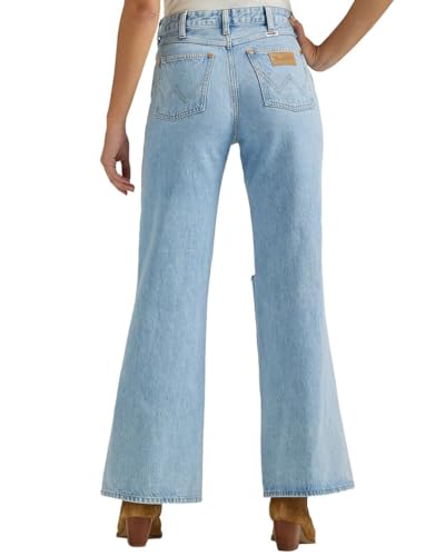 Wrangler Women's Light Wash Destructed Loose Flare Jeans Blue 28W x 32L