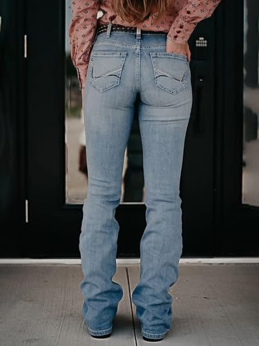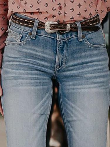 Flamingals Boot Cut Jeans for Women Trendy Tummy Control Jeans Stretch Straight Leg Skinny Jeans Light Blue M