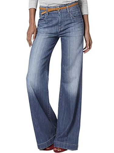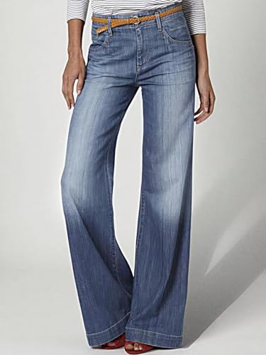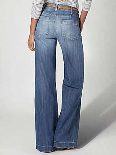 Flamingals Wide Leg Jeans for Women Stretch Low Waist Baggy Jeans Boot Cut Jeans Flare Leg Denim Pants Without Belt Wash Mid Blue XL