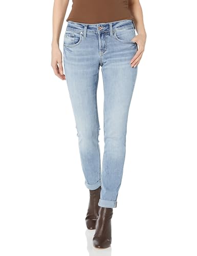 Details: Silver Jeans Co. Girlfriend Mid Rise Slim Leg Jeans - Just like your best gal pal, the Silver Jeans Co.™ Girlfriend will become your reliable go-to pair. It has a slightly slimmer, more feminine silhouette, but still fits slouchy through the hip and thigh. Designed with a comfortable mid rise and slim leg for a classic, flattering look you’ll love.