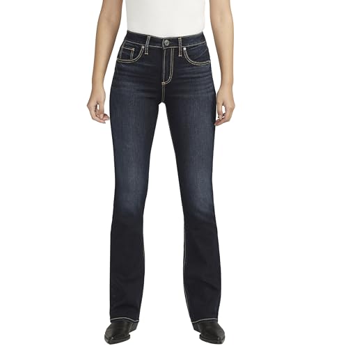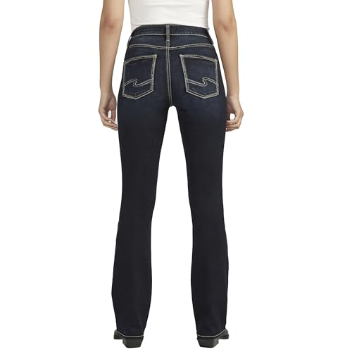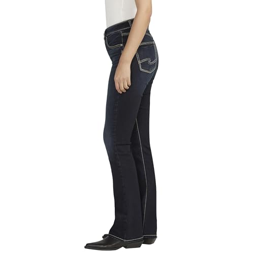 Silver Jeans Co. Women's Avery High Rise Curvy Fit Slim Bootcut Jeans, Dark Wash EDB484, 34W x 33L