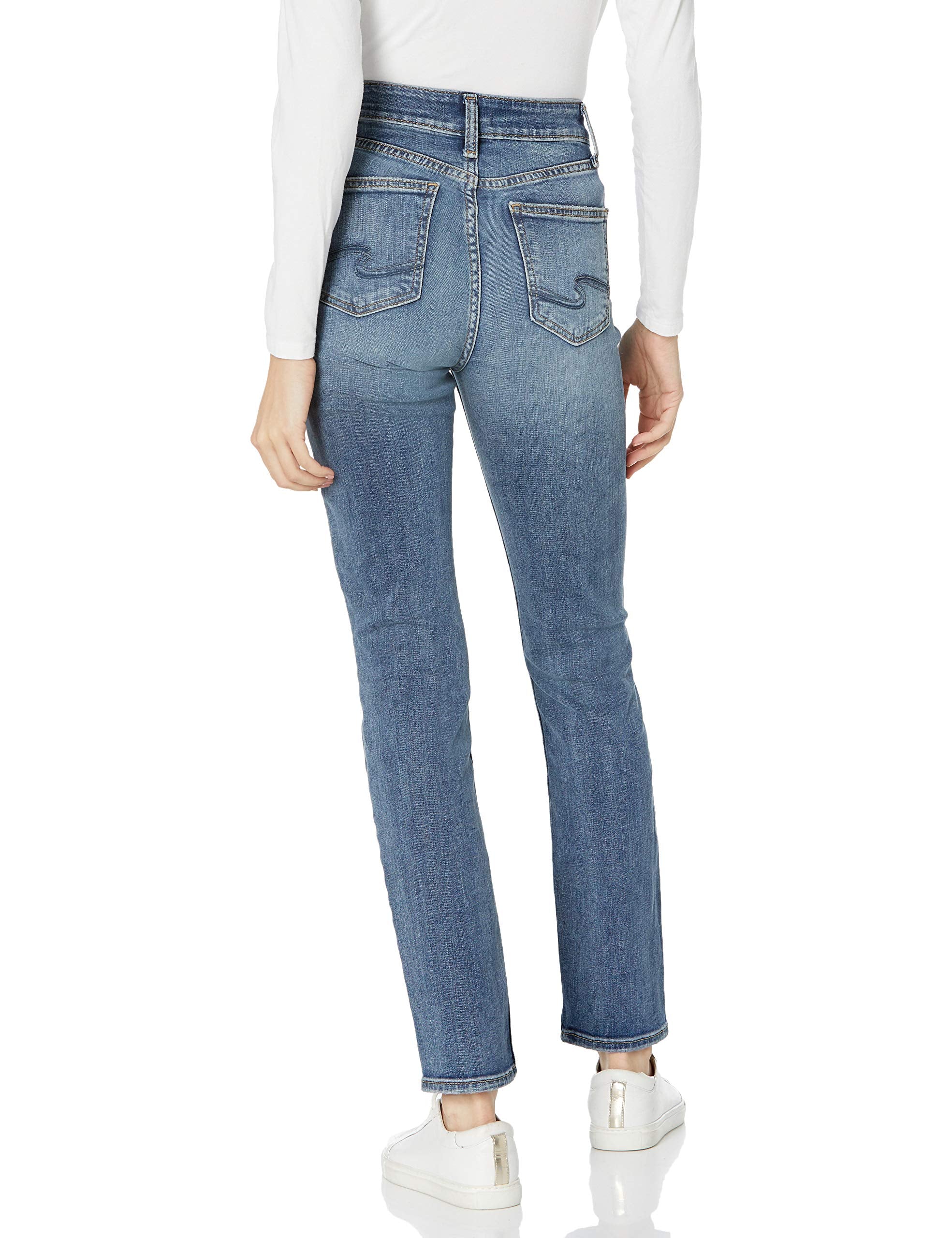 Silver JEANS CO Women's Avery High Rise Straight Leg Jeans-Legacy, Distressed Medium Eco Wash, 24W x 29L