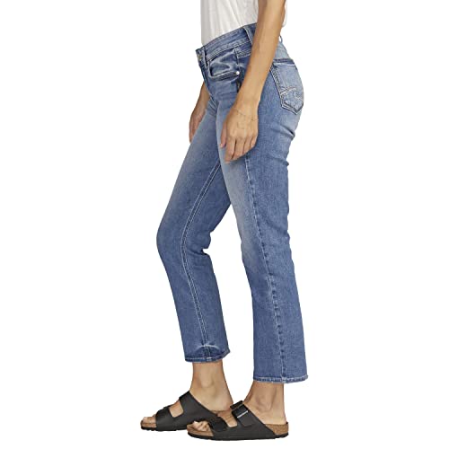 Silver Jeans Co. Women's Elyse Mid Rise Comfort Fit Straight Crop Jeans, Med Wash EPX389, 29