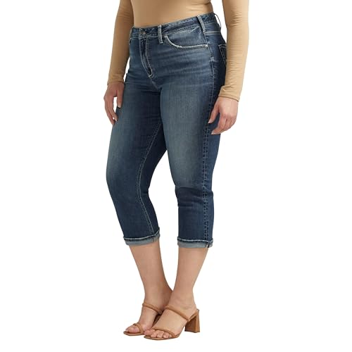 Silver Jeans Co. Women's Plus Size Avery High Rise Curvy Fit Capri Jeans, Med Wash CVS312