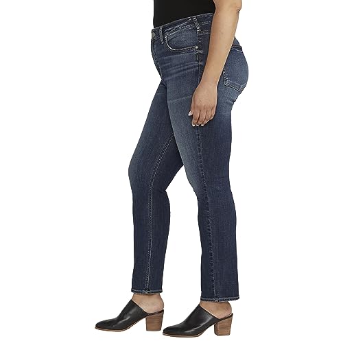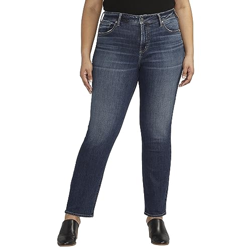 Silver Jeans Co. Women's Plus Size Avery High Rise Curvy Fit Straight Leg Jeans, Med Wash CVS358