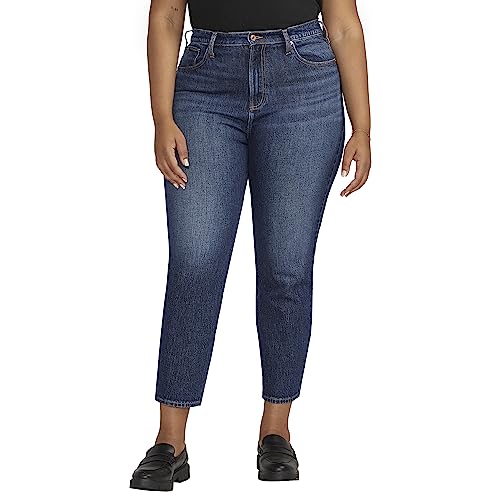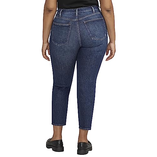Silver Jeans Co. Women's Plus Size Highly Desirable High Rise Slim Straight Leg Jeans, Indigo, 18 Plus Short