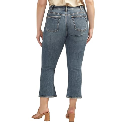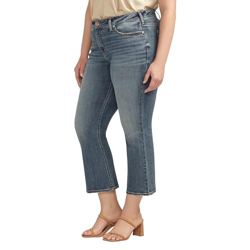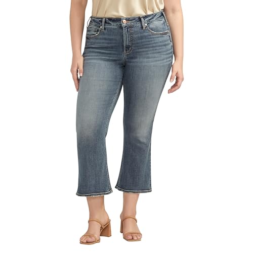 Silver Jeans Co. Women's Plus Size Suki Mid Rise Curvy Fit Cropped Flare Jeans, Med Wash CVS390