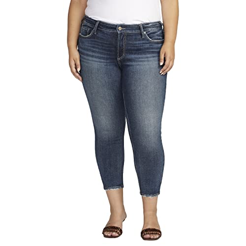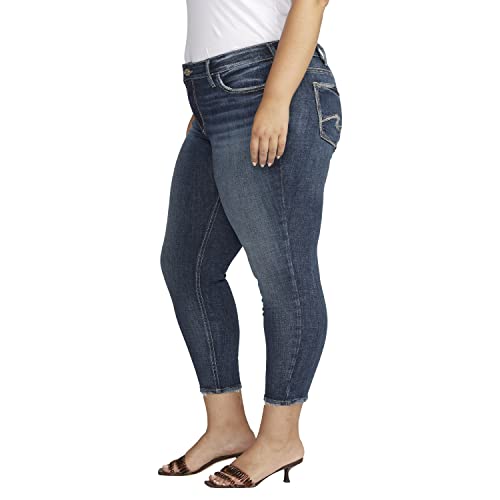 Silver Jeans Co. Women's Plus Size Suki Mid Rise Curvy Fit Skinny Crop Jeans, Med Wash EAE388