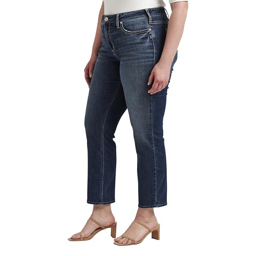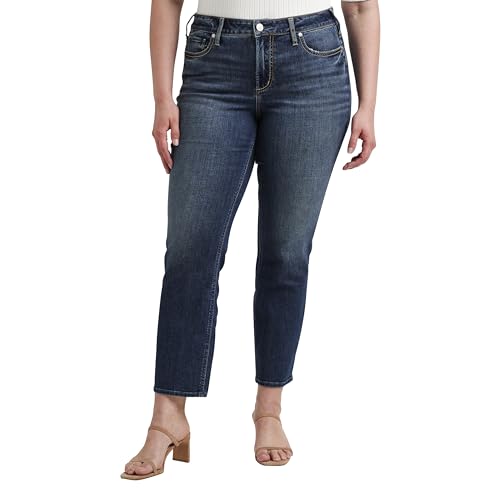 Silver Jeans Co. Women's Plus Size Suki Mid Rise Curvy Fit Straight Crop Jeans, Med Wash CVS376