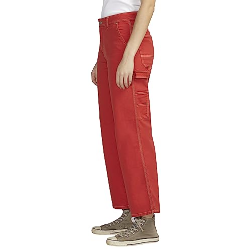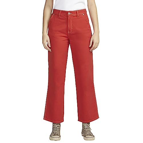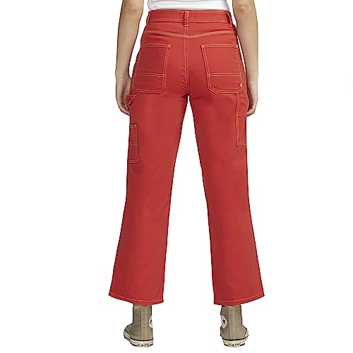 Silver Jeans Co. Women's Relaxed Fit Straight Leg Carpenter Pant, Red, 26W x 29L