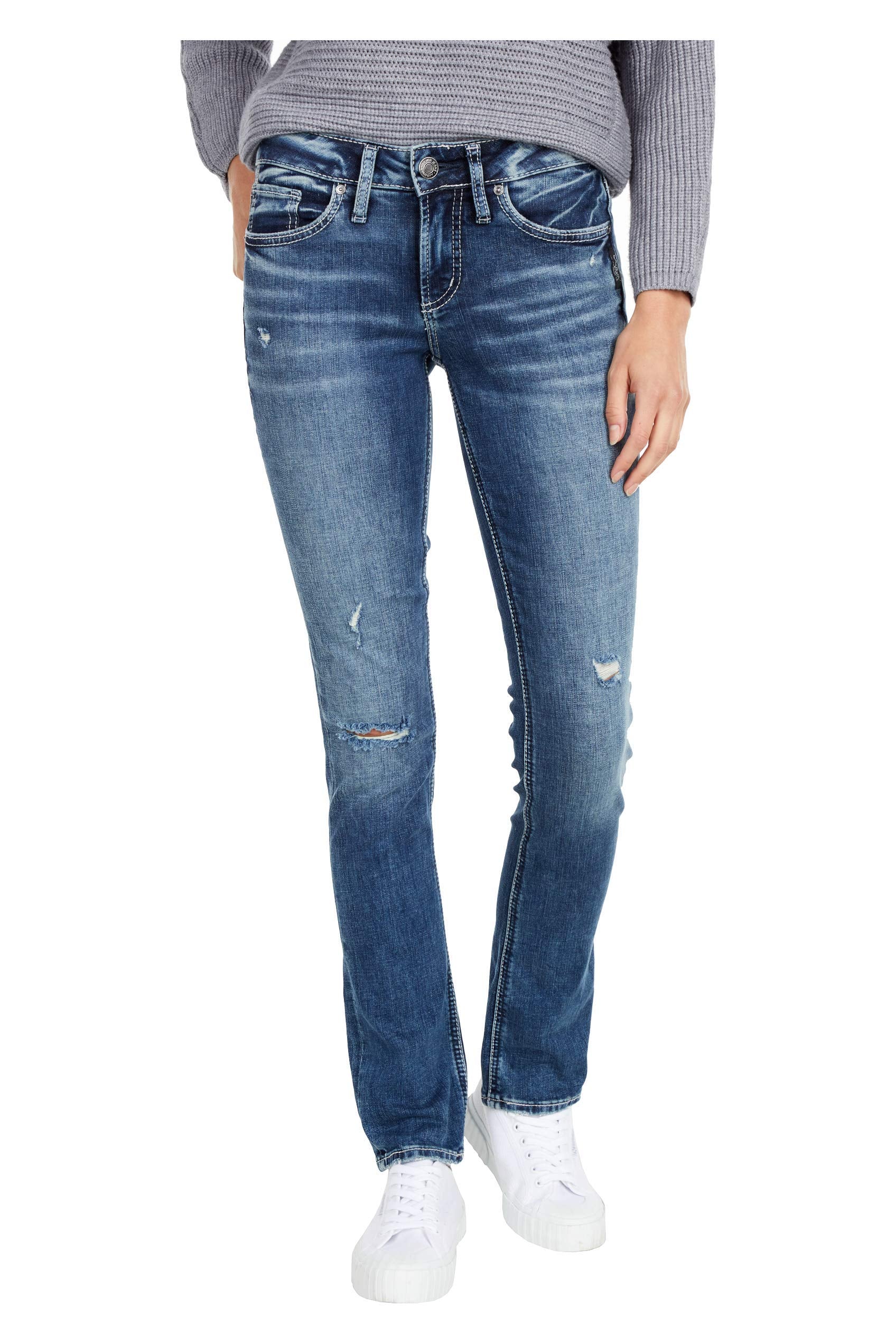 Silver Jeans Co. Women's Suki Curvy Fit Mid Rise Straight Leg Jeans Legacy, Power Stretch Dark Wash Indigo, 24W x 31L