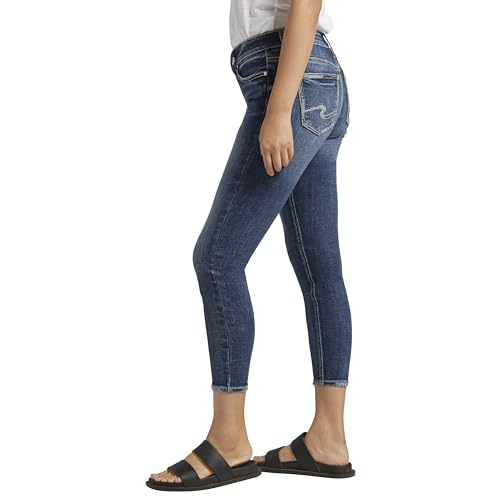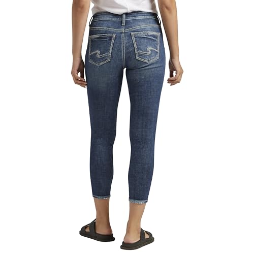 Silver Jeans Co. Women's Suki Mid Rise Curvy Fit Skinny Crop Jeans, Med Wash EAE388, 27W x 26L