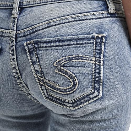 Silver Jeans Co. Women's Suki Mid Rise Curvy Fit Slim Bootcut Jeans, Light Wash Indigo, 31W x 31L