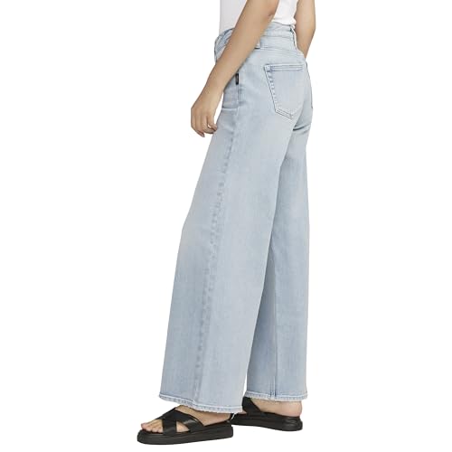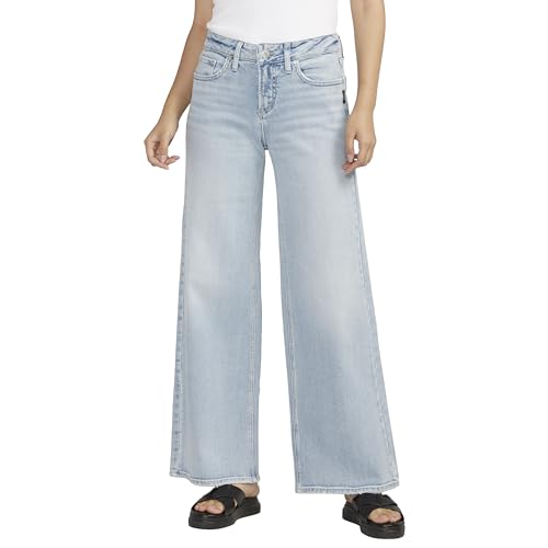 Silver Jeans Co. Women's Suki Mid Rise Curvy Fit Wide Leg Jeans, Light Wash SOC171