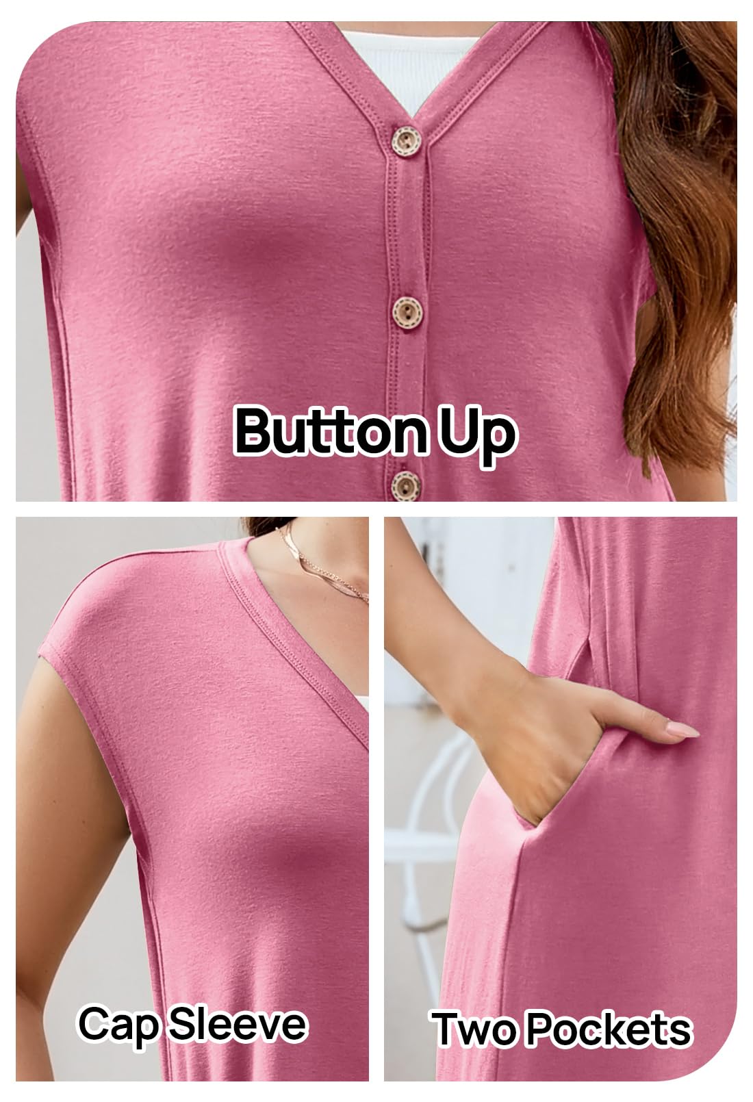 • Feature: One piece design, deep v neck with four button front, cap sleeve, solid color, loose waist, shapeless silhouette, extra long wid leg pant with two pockets, rompers for women summer dressy, jumpers for women casual.