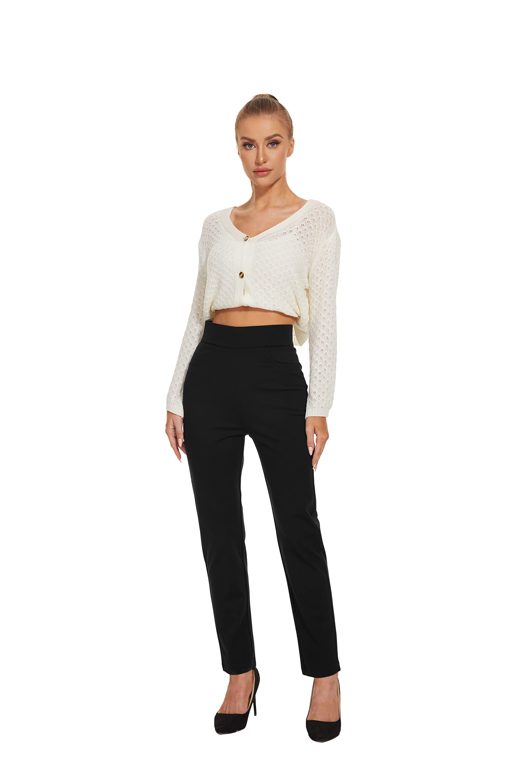 KICZOY Women's Dress Pants Comfort Stretch Slim Fit Leg Skinny High Waist Pull on Pants with Pockets Black