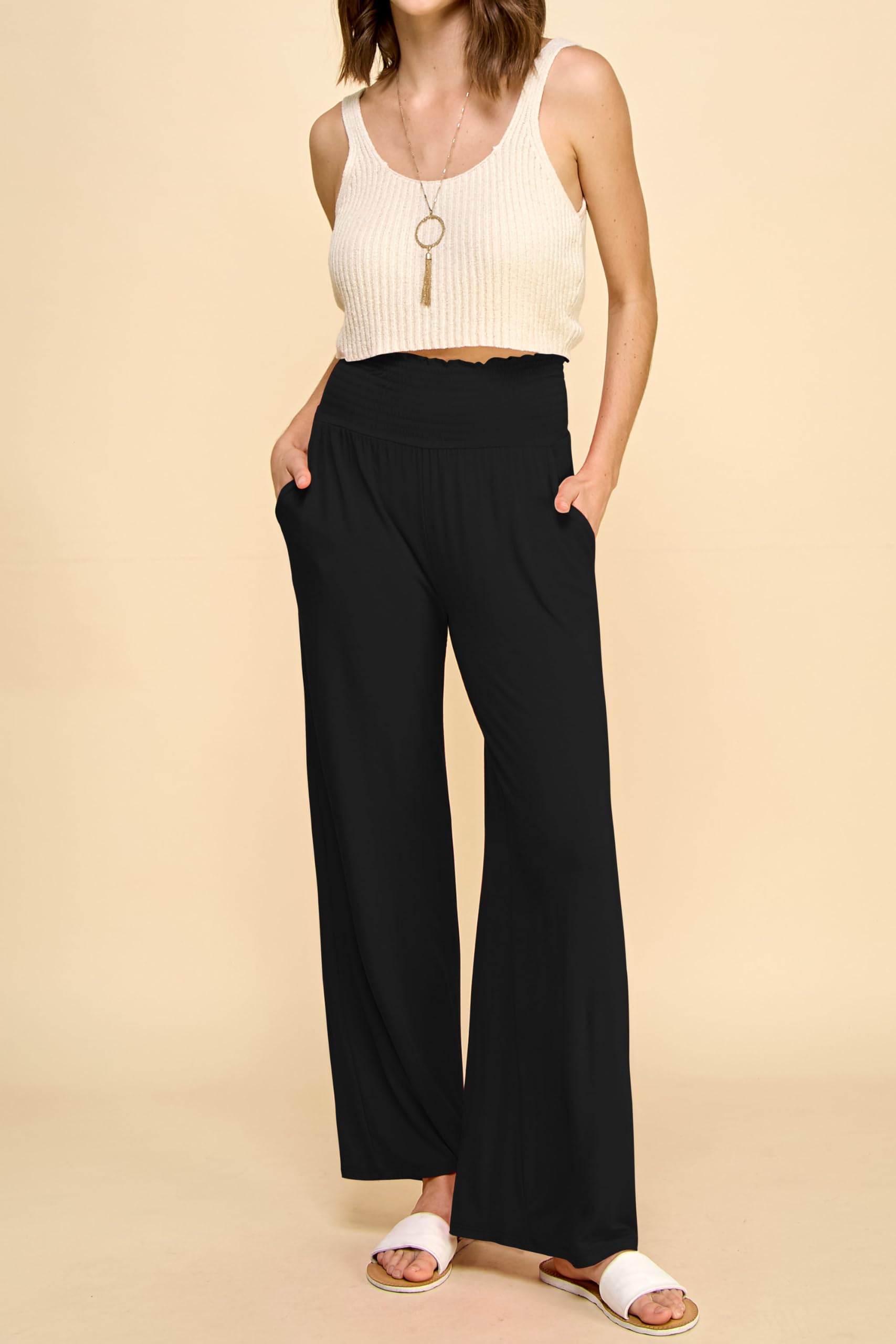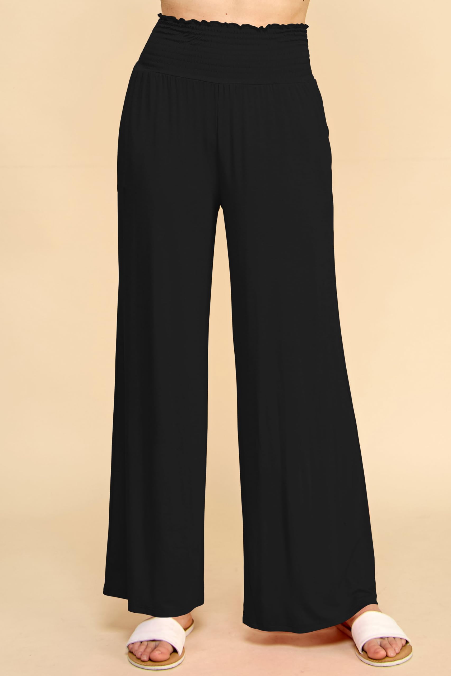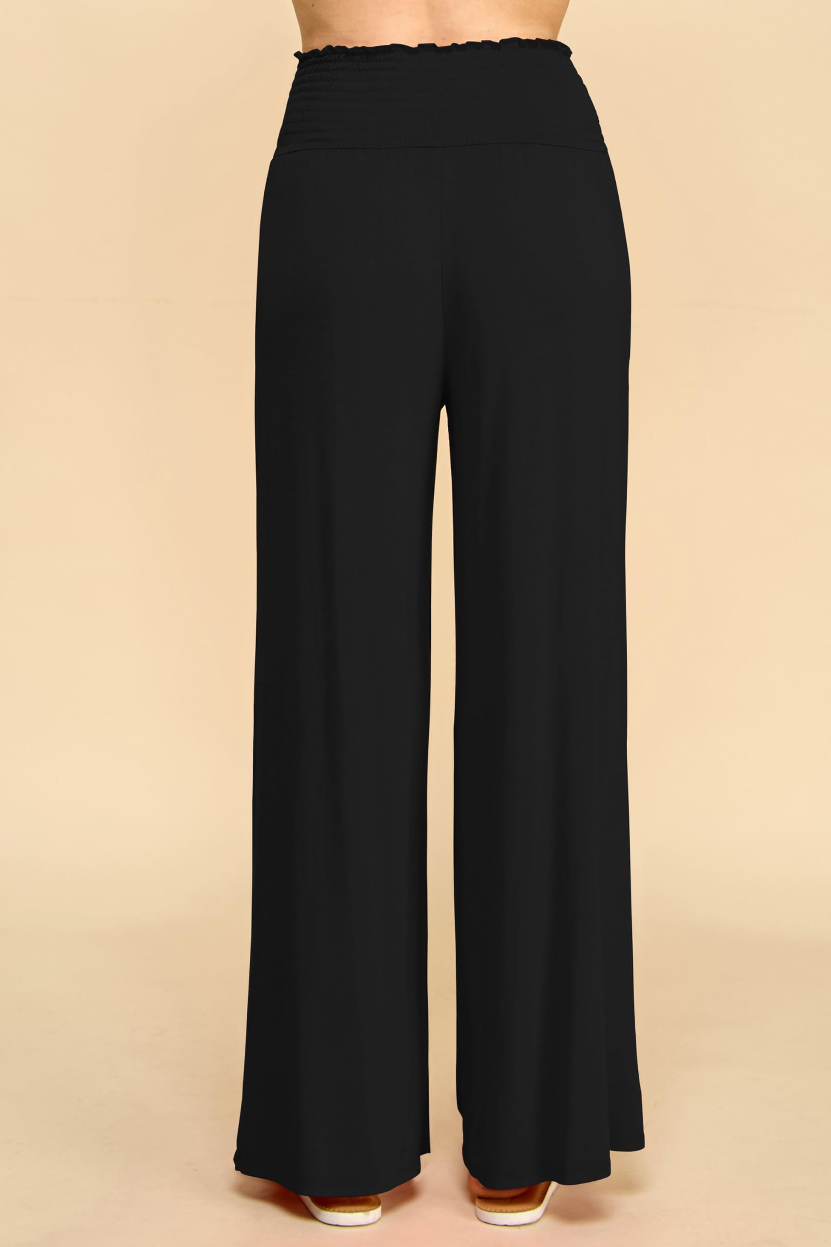 • Elegance and Comfort Combined: Our Women's Smocked Elastic High Waisted Palazzo Pants offer the perfect fusion of style and comfort, with a smocked elastic high waist for a flattering fit.