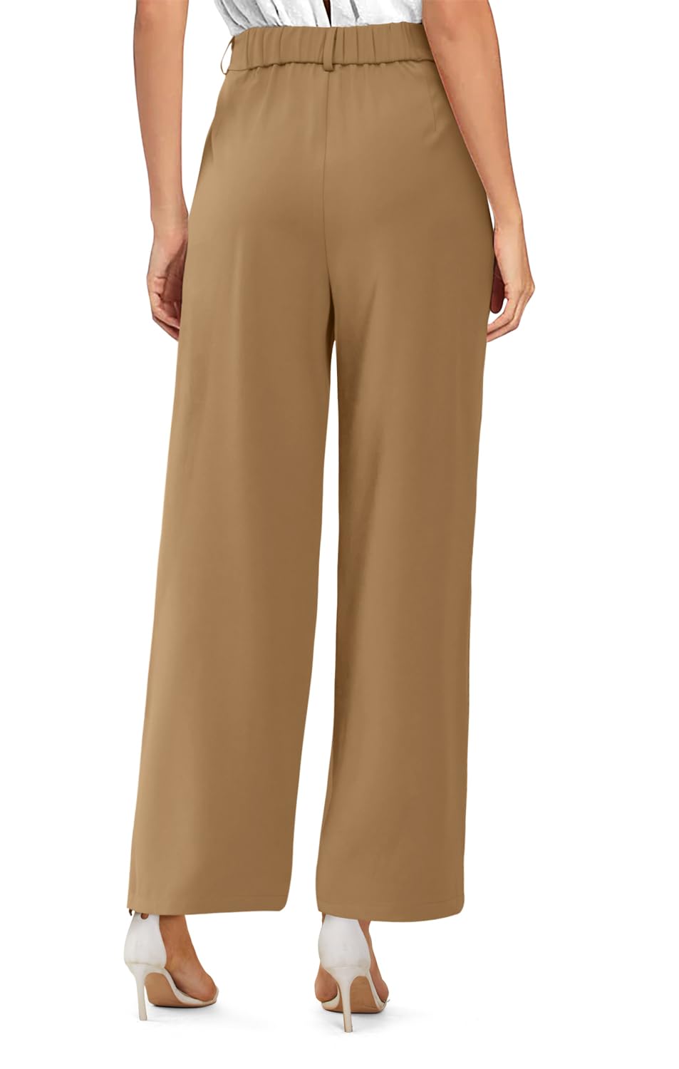 • Unique design: Metal buckle closure with zip fly,high waisted, back elastic waist, two side pockets, pleated front,wide leg,loose fit,casual style, workout pants.