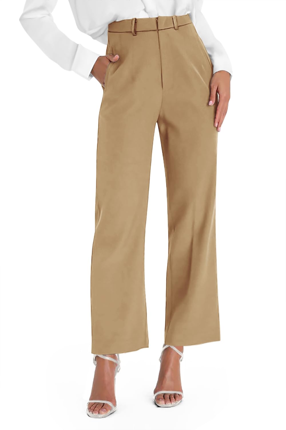 onlypuff Khaki Pants for Women Bootcut Petite Wide Leg High Waist Slacks M