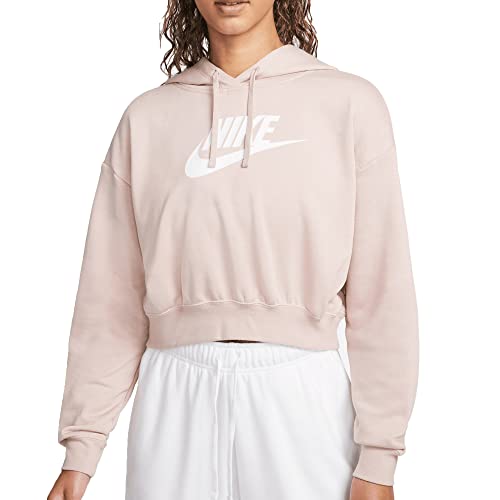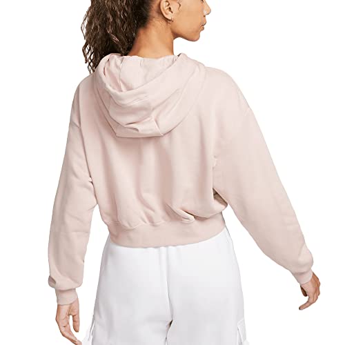 Nike Sportswear Club Fleece Women's Oversized Crop Graphic Hoodie Size - Large Pink Oxford/White
