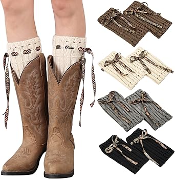 PHOGARY 4 Pairs Winter Warm Boot Cuffs for Women, Crochet Knitted Boot Socks for Gilrs Short Leg Warmers Boot Topper Socks Leg Cuffs Boot Warmers Winter Gift for Ladies