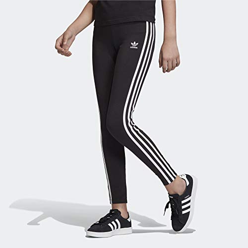 adidas Originals Girls' 3 Stripes Leggings, Black/White, Medium