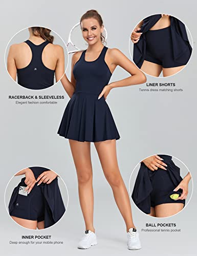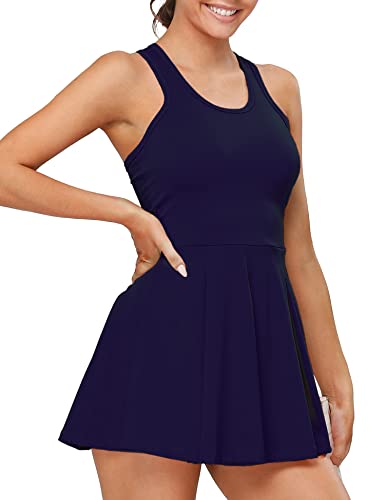 1a1a Women’s Tennis Dress with Shorts Sleeveless Stretchy Lightweight Racerback Dark Blue Small