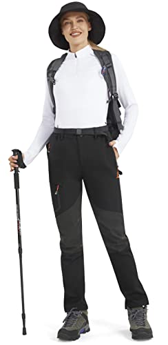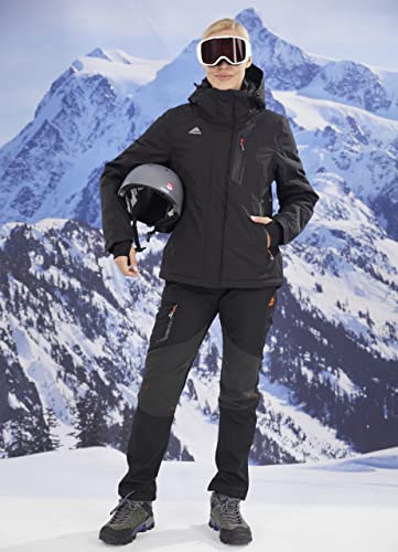 Athrock Snow Pants Womens Ski Hiking Cargo Snowboard Waterproof Rain Tactical Fleece Lined Winter Skiing Pants with Pockets - Black - L
