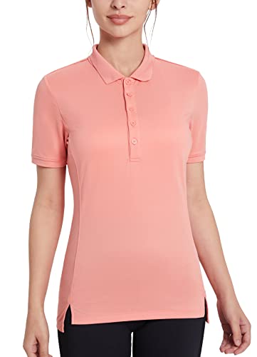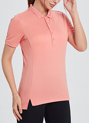 BALEAF Women's Golf Polo Shirt Equestrian Shirts Short Sleeve Riding English Horseback Summer Moisture Wicking Coral L