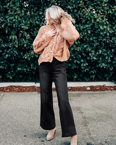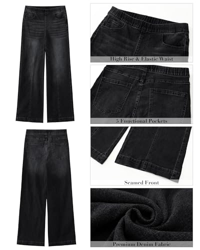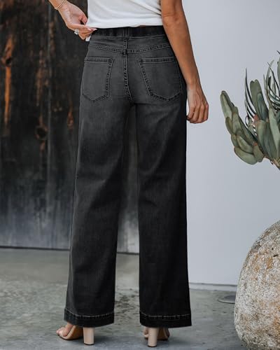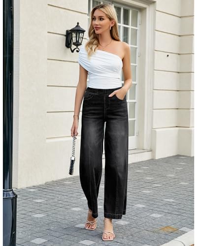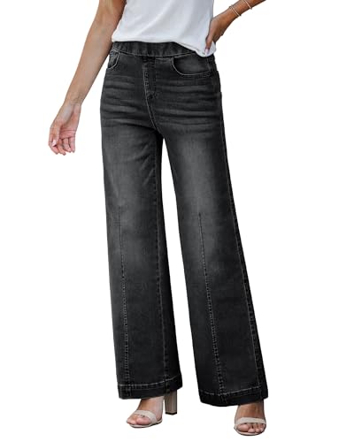 GRAPENT Pull On Womens Jeans Baggy Stretchy High Waisted Denim Wide Leg Trouser Pants Trendy Front Seam 90s Loose Jean