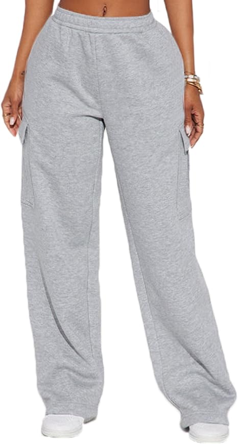 AROGONE Women's Cargo Sweatpants Baggy Casual High Waisted Straight Leg Pants with Pockets