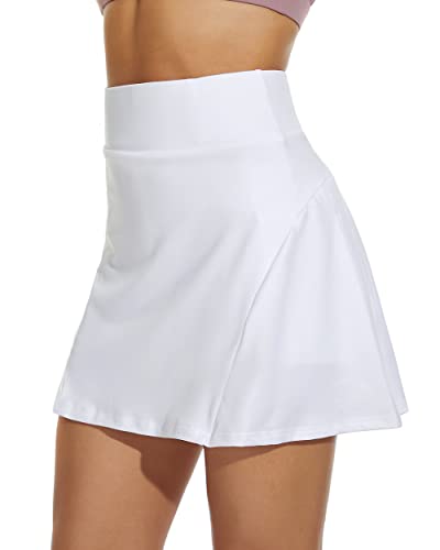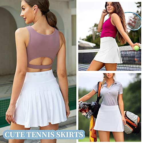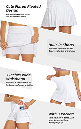 Betaven Pleated Tennis Skirts for Women with Pockets Build in Shorts Golf Skort High Waisted Athletic Running Activewear,A-White,Medium