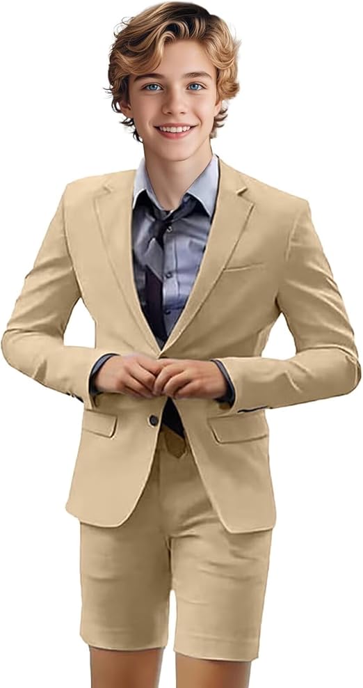 Boys Summer Suit Set 2 Pieces Slim Fit Blazer Short Pants Set Cute Formal Suit Kids Tuxedos for Wedding