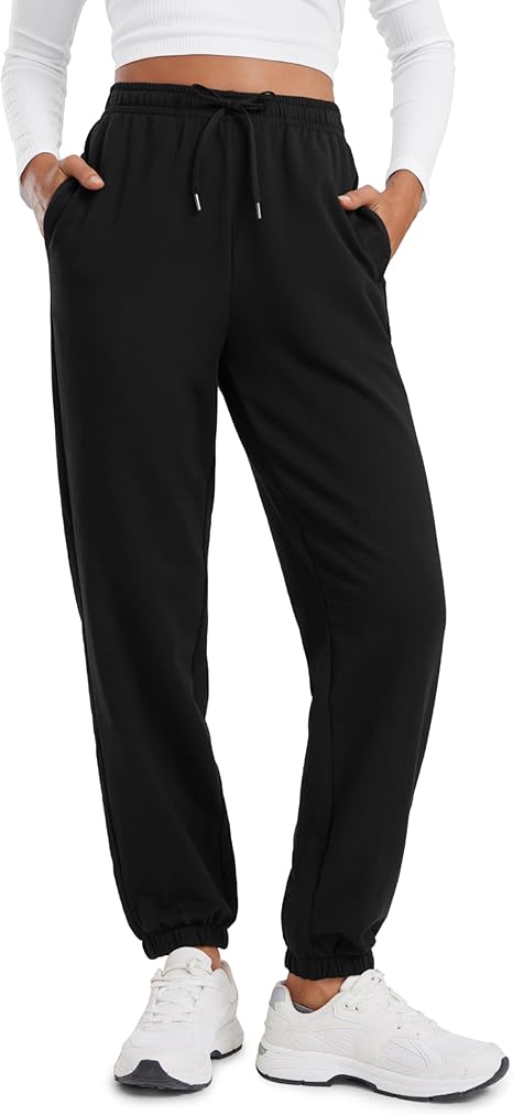 CRZ YOGA Fleece Sweatpants Women Cotton Joggers High Waisted Lounge Casual Travel Elastic Bottom Pants with Pockets