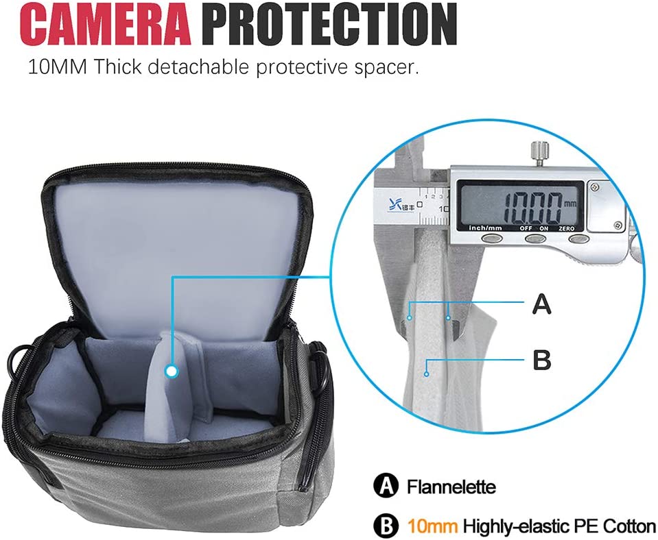 • 【Professional Design and High Quality】①High-density wear-resistant and water repellent material; 10mm pearl cotton velcro spacer for shockproof and pressure release;②All the sutures are strengthen make the camera bag more durable;③Zippers are made of alloy metal, which are smooth and no rust.④Cold , Heat resistant hooks are durable and not easy to break.
