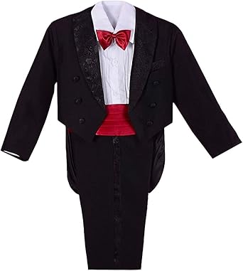 Dressy Daisy Boys Tuxedo Suit 5 Pieces Set Formal Wear Wedding Outfit with Cummerbund, Black/White 001