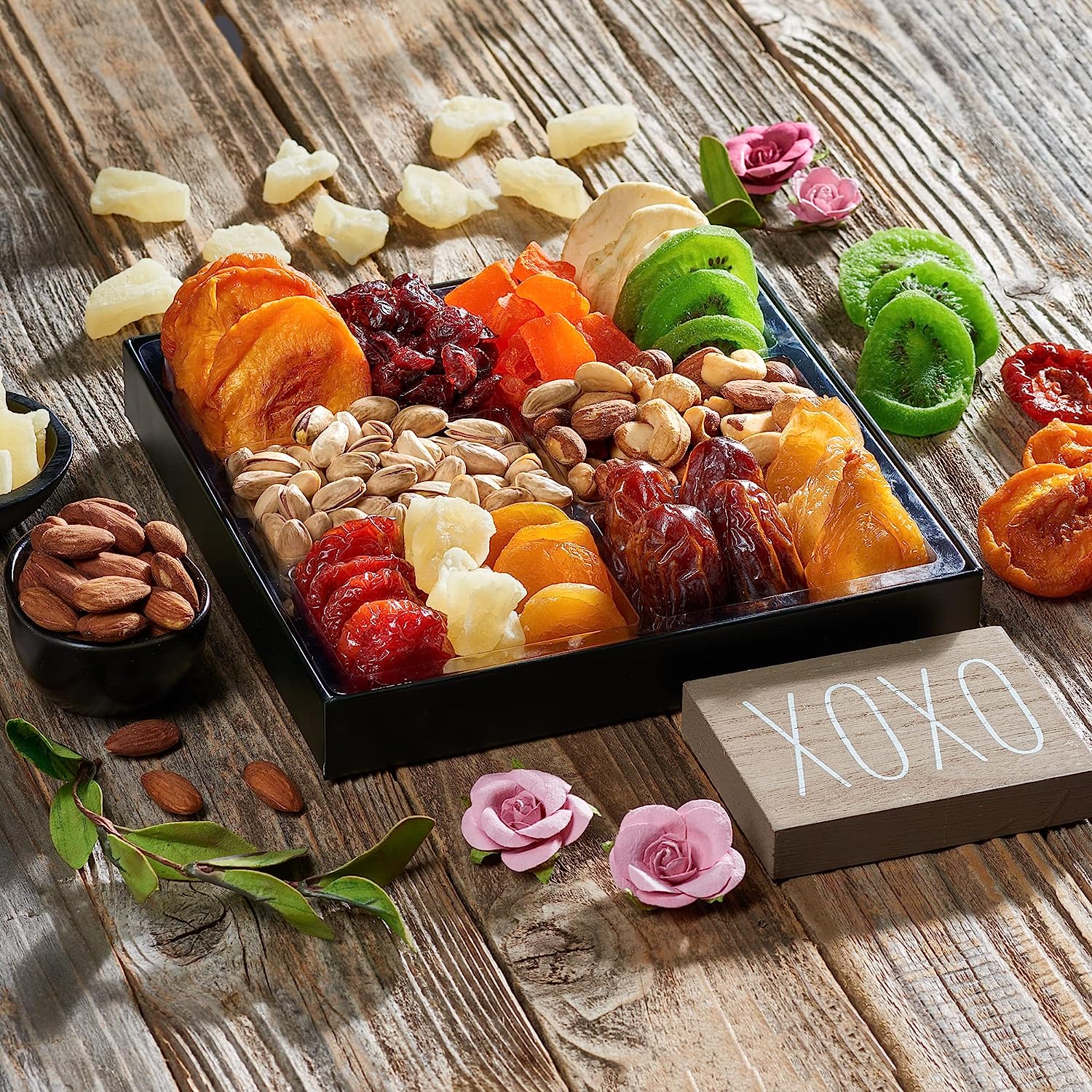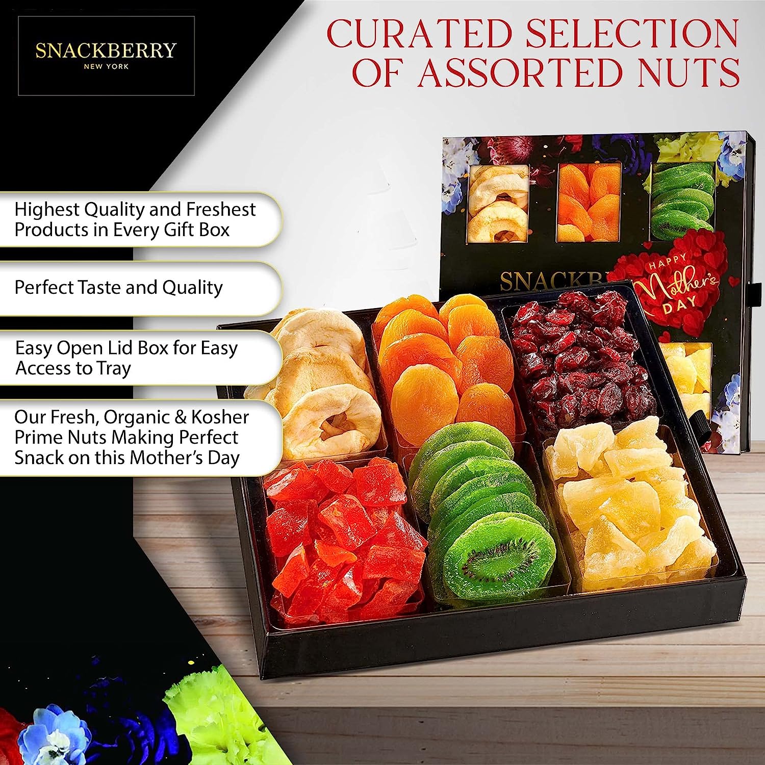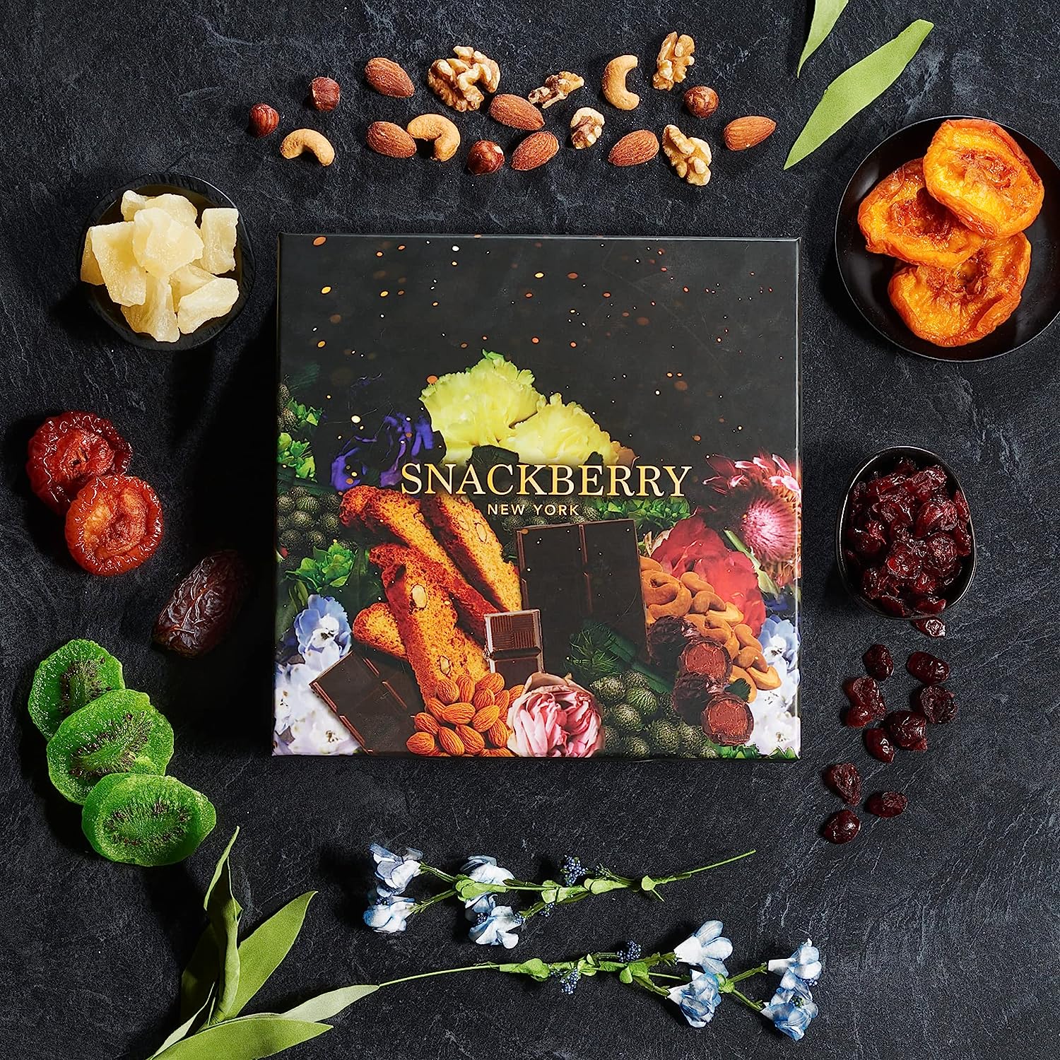 Dried Fruit & Nuts Gift Basket Arrangement Platter, Gourmet Food Bouquet For Juyly 4th, Birthday Care Package, Healthy Kosher Snack Box - Her Him - Snackberry (9 Variety)