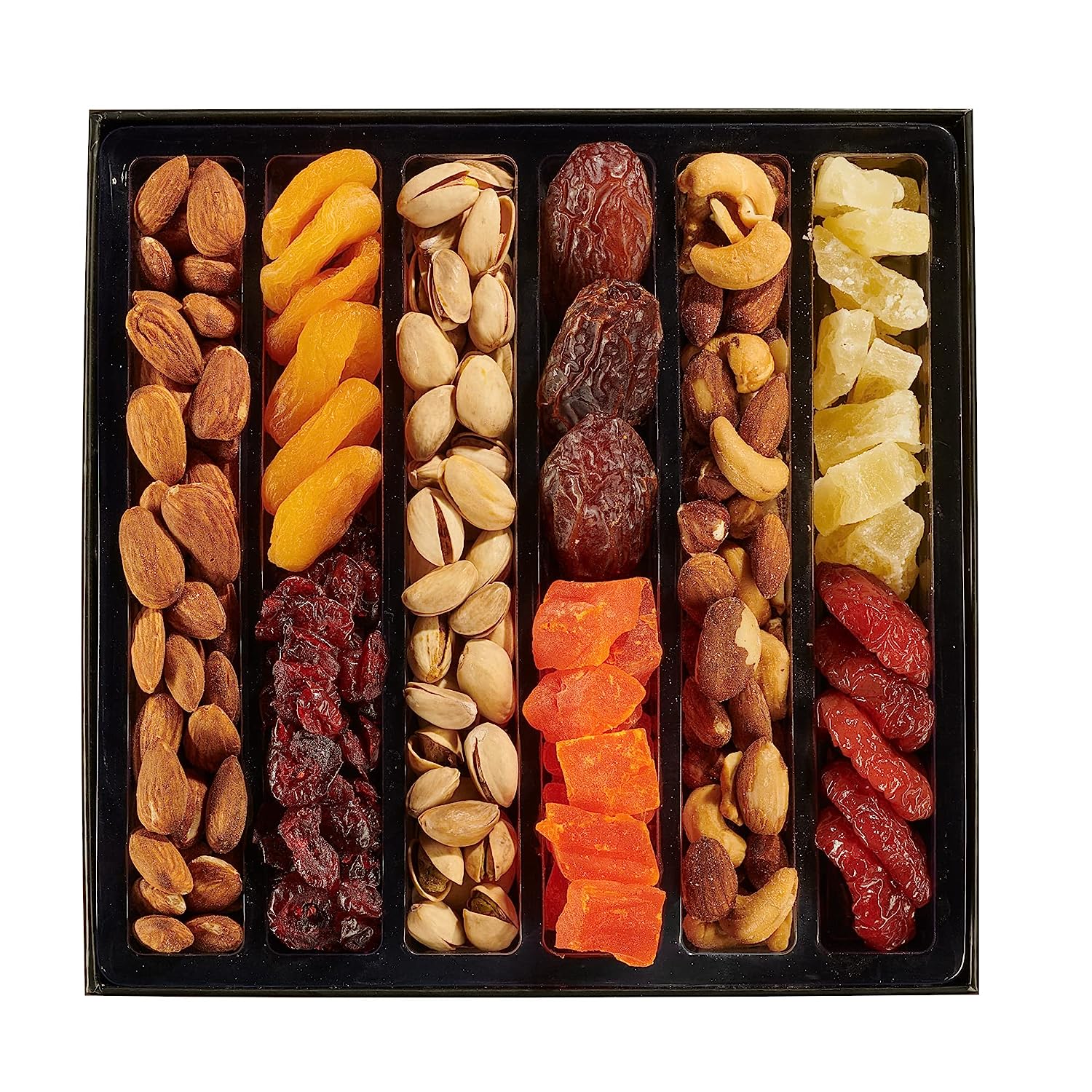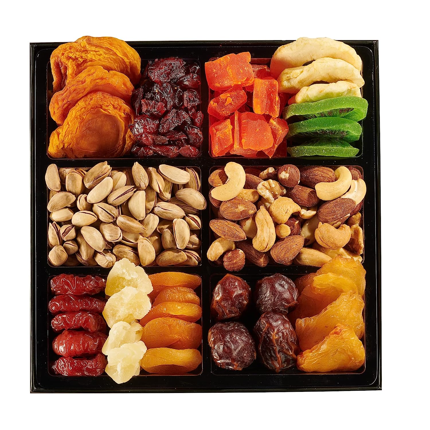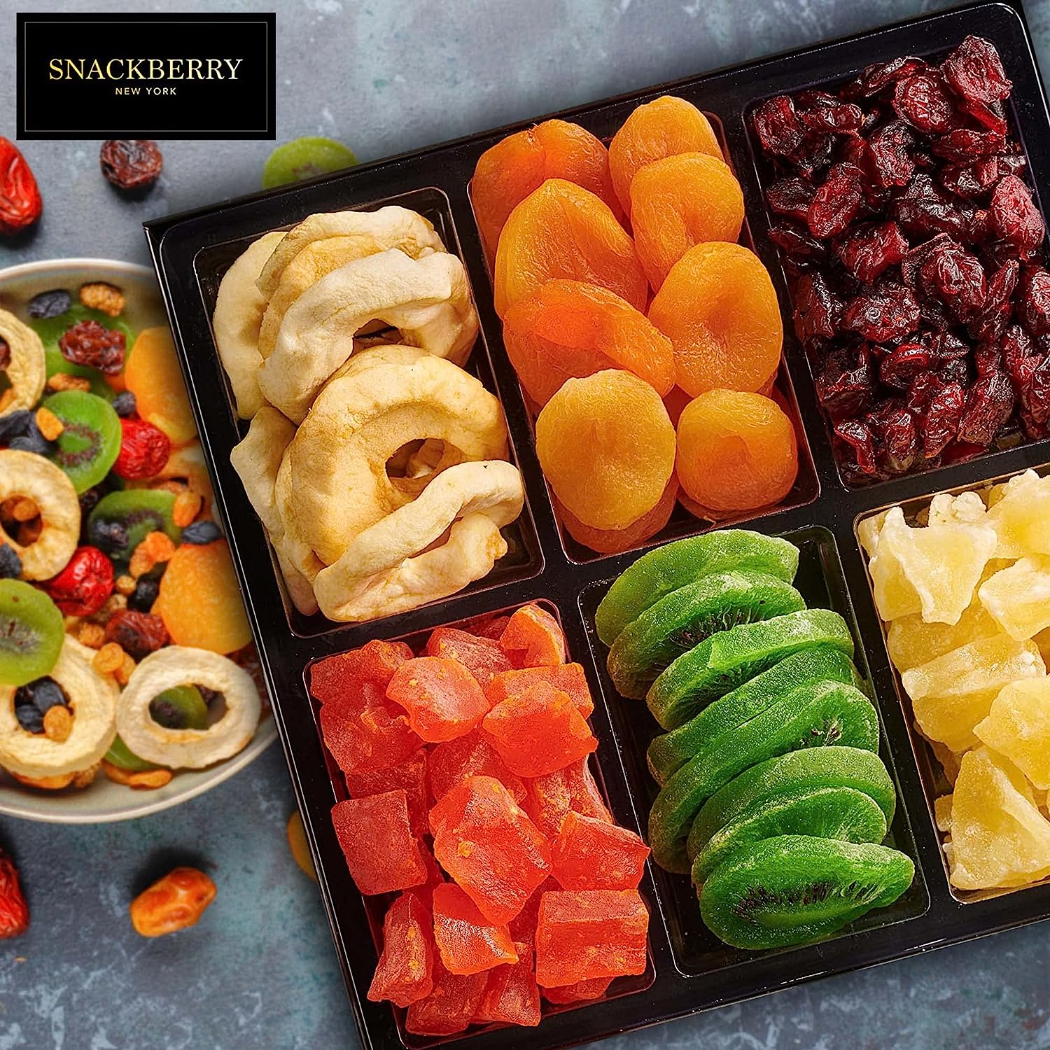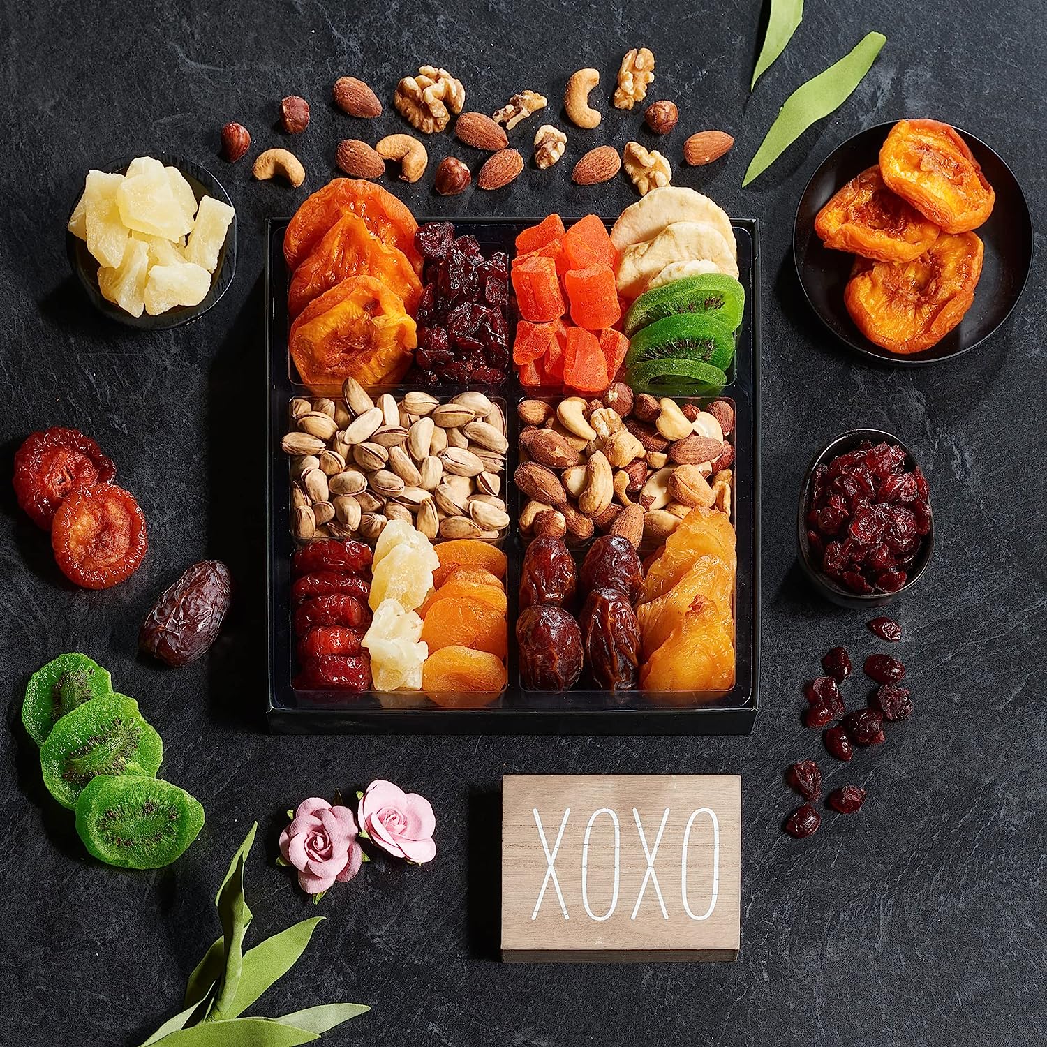 Dried Fruit & Nuts Gift Basket Arrangement Platter, Gourmet Food Bouquet For Juyly 4th, Birthday Care Package, Healthy Kosher Snack Box - Her Him - Snackberry (9 Variety)