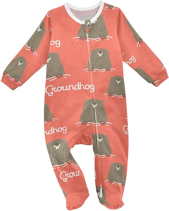 Dussdil Happy Groundhog Day Baby One-Piece Footies Newborn Rompers Pajamas Cotton Footed Pjs for Sleep Play Boys Girls