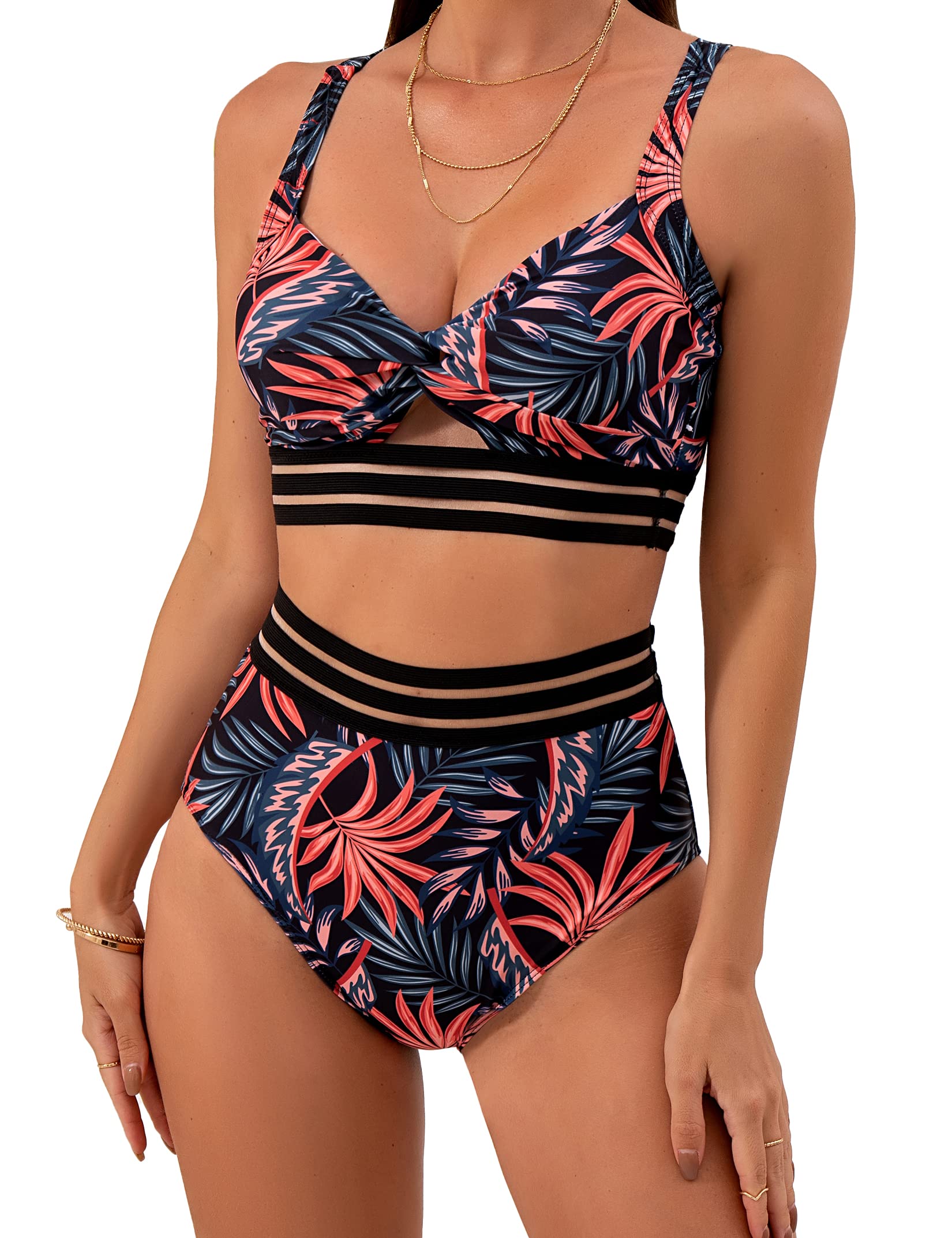 high waisted bikini swimsuit for women 2 piece bathing suits two piece tummy control bottoms top push up sexy black white red long torso women's set cheeky full coverage cute print blue high waist curvy green large bust cut underwire slimming leopard vintage swim retro highwaist wrap highwaisted removal big busted flattering mesh