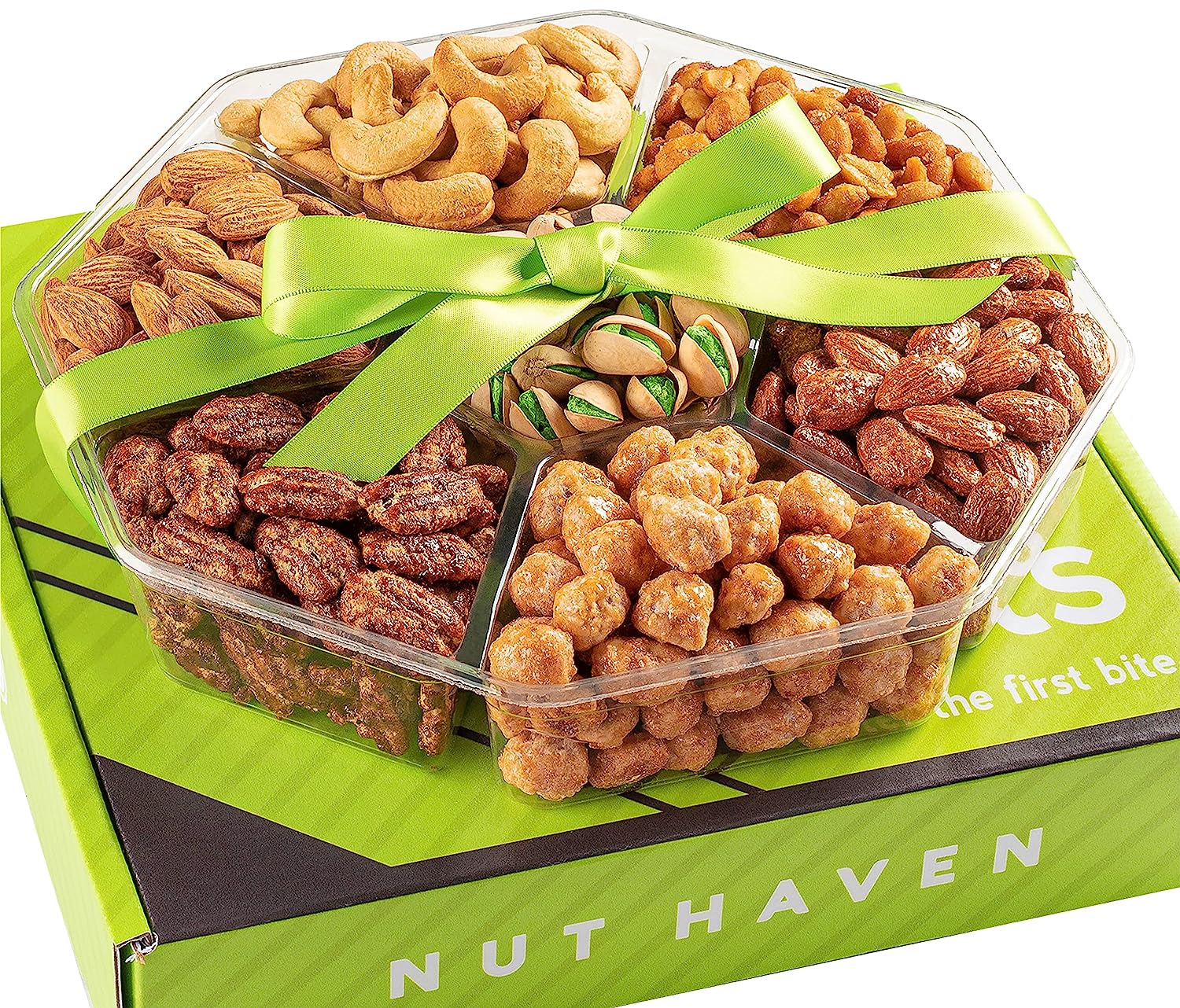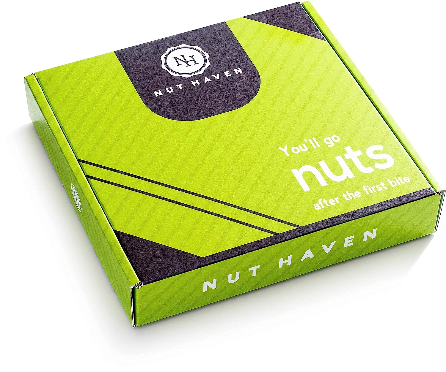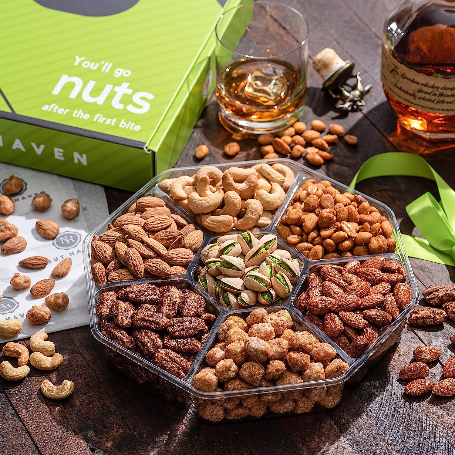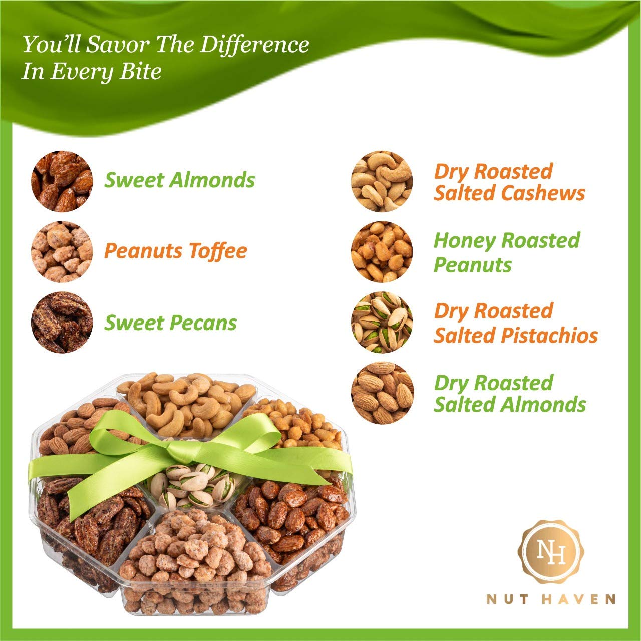 • THERE ARE TREATS... AND THEN THERE ARE NUT HAVEN TREATS! - Batches of nuts may look the same to most of us, but the mavens at Nut Haven know the difference between a typical treat and a gourmet edible delight. The only items that make it into a Nut Haven basket are carefully selected nuts that are naturally rich, ideally textured and roasted OR sweetened with the perfect flavor.