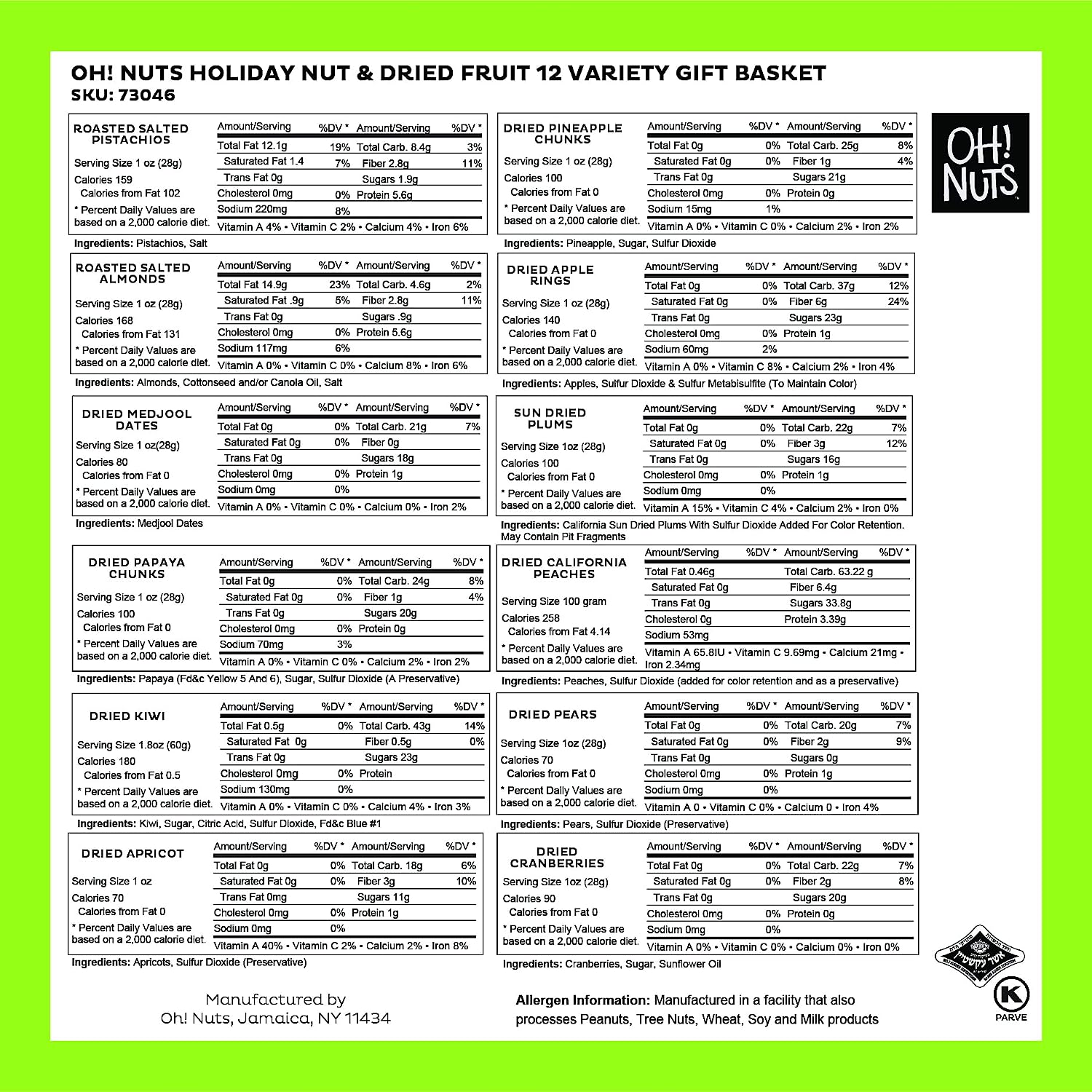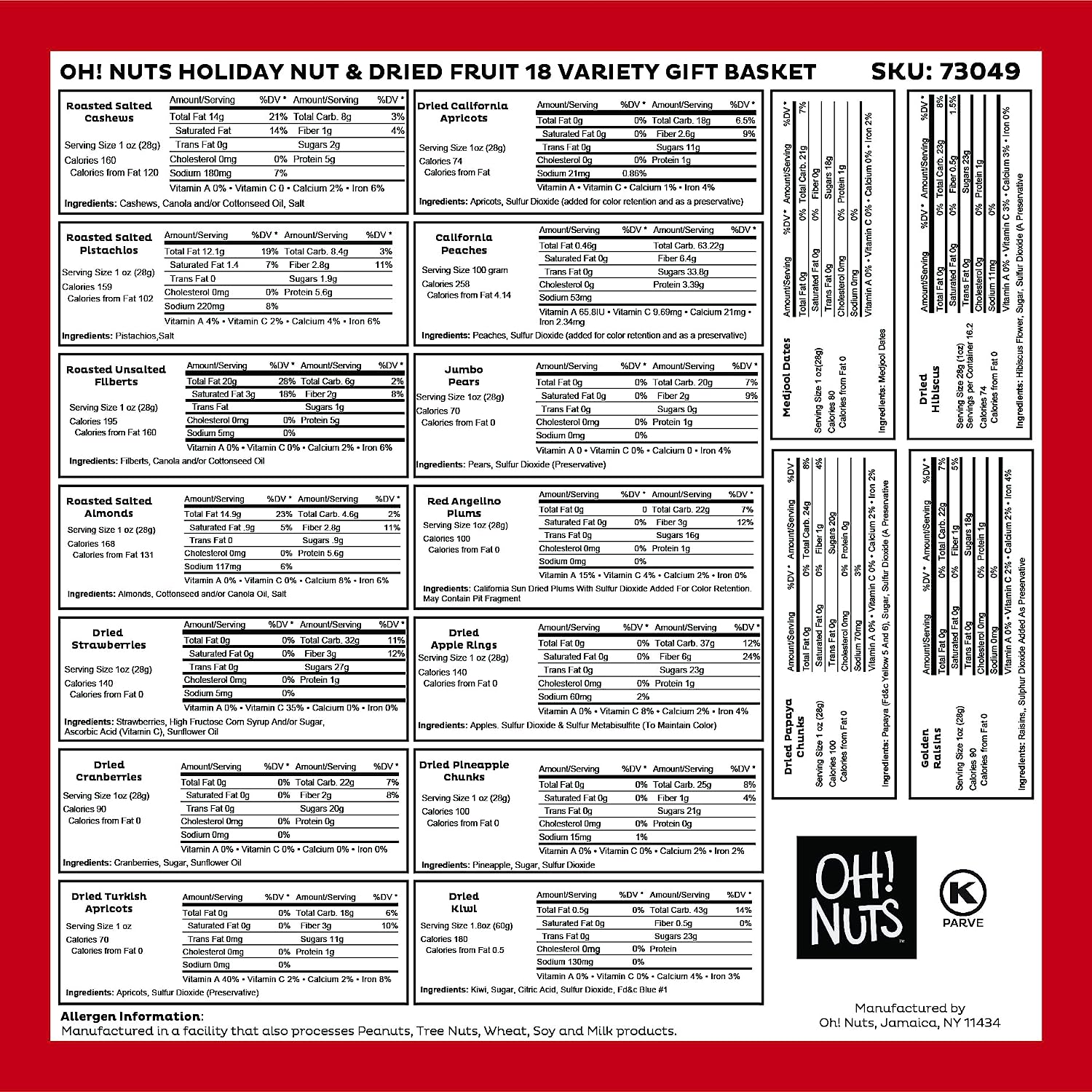 • 🎁 NUTS 🥜 CANDY 🍭 CHOCOLATE 🍫 GIFTS: If you are looking for premium dried fruits, crunchy roasted nuts, yummy chocolates, or holiday gifts, we have all of them and so much more. Browse our entire collection of Oh Nuts products to see what else is delicious in the snack aisle.