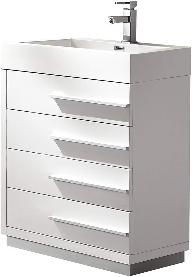 Fresca Livello 24 Inch White Modern Bathroom Vanity with White Integrated Acrylic Sink - Solid Wood Base with 4 Soft Closing Drawers - Faucet Not Included