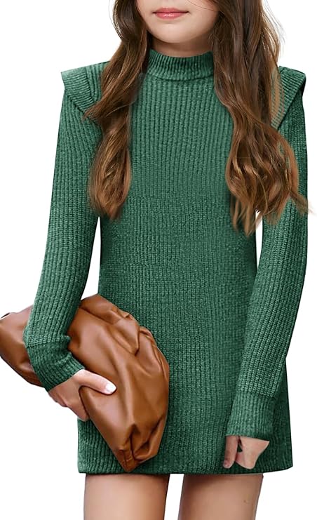Haloumoning Girls Long Sleeve Sweater Dress Kids Casual Crewneck Knitted Pullover Jumpers 5-14 Years