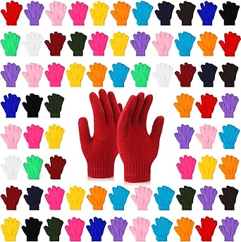 Handepo 150 Pairs Kids Winter Magic Gloves Bulk Warm Knitted Gloves Colorful Stretchy Full Finger Gloves Acrylic Knitted Mitten Gloves for Children Boys Girls, 15 Color